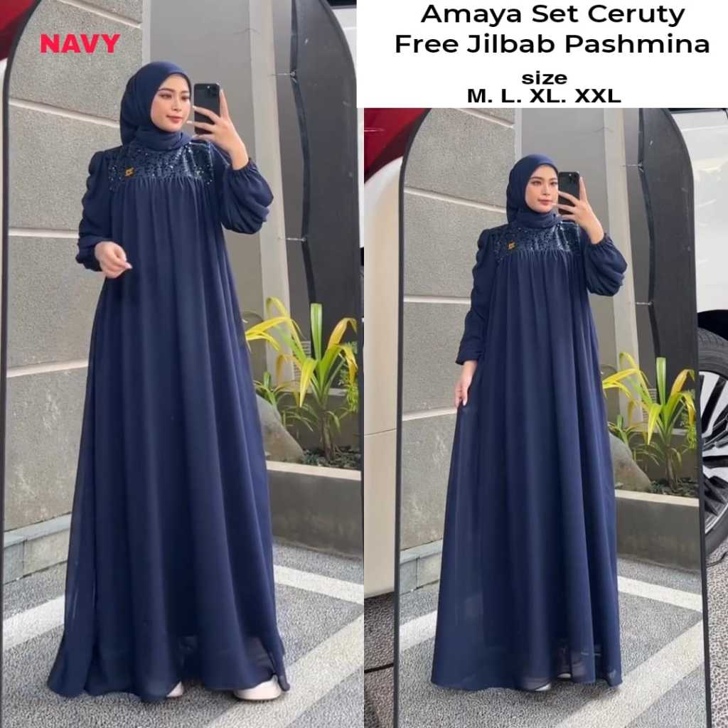 GAMIS CERUTY PUTIH BERSIH LUCY DRESS (Bisa untuk UMROH dan HAJI) AMAYA