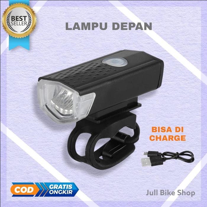 Lampu Depan Sepeda Led Rechargeable Senter Charge Cas Usb Lipat Mtb Anak Fixie Terang Plus Strap - Hitam