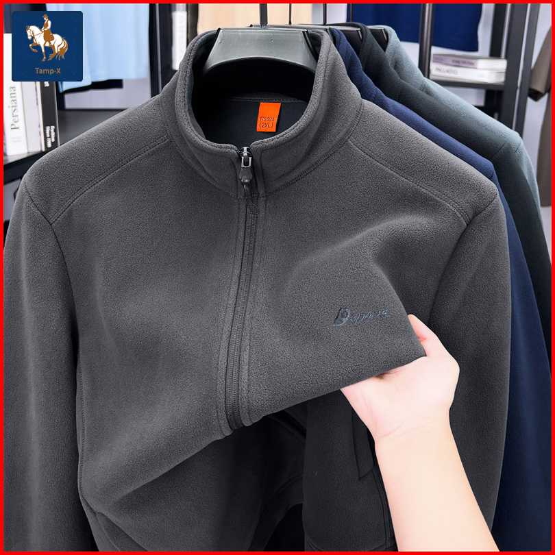 Tamp-x Oversize Jacket Pria Leher Berdiri Lengan Panjang Bordir Casual Korean Style Tebal Corduroy Zipper Jaket Outer