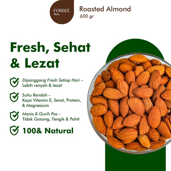 Kacang Almond Panggang Forbee 600G | Roasted Almond | Snack Lebaran Toples | Cemilan Sehat Kacang Kacangan