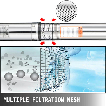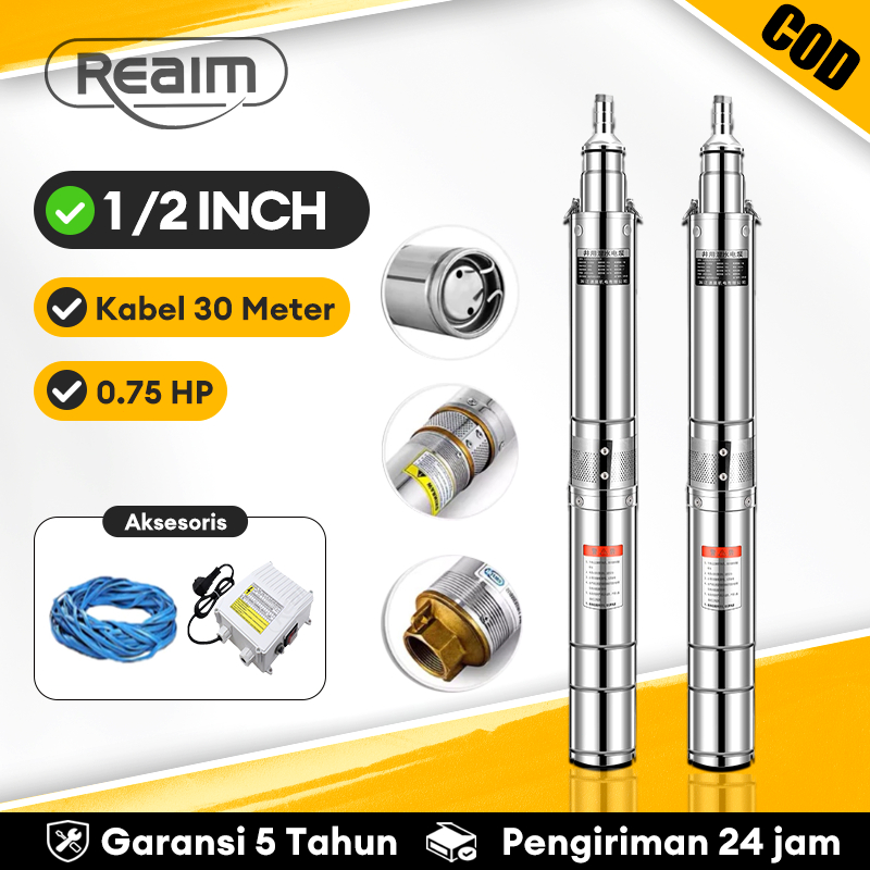 REAIM Pompa Satelit 1/2 inch Pompa Air 0.75HP 550W Celup Sumur Kabel 25 Stainless Steel Submersible Pump