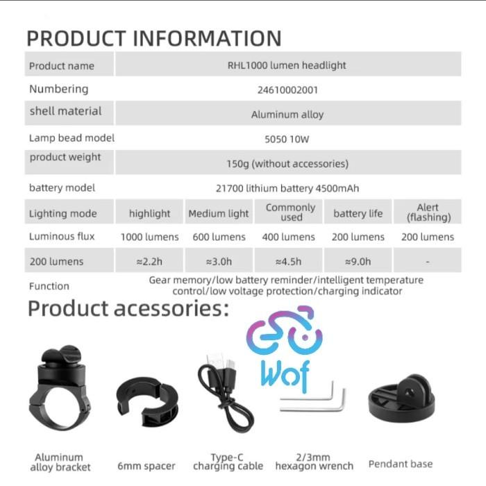 Rockbros Rhl1000 Lampu Barfly Depan Sepeda Rhl 1000 Front Light 1000Lm