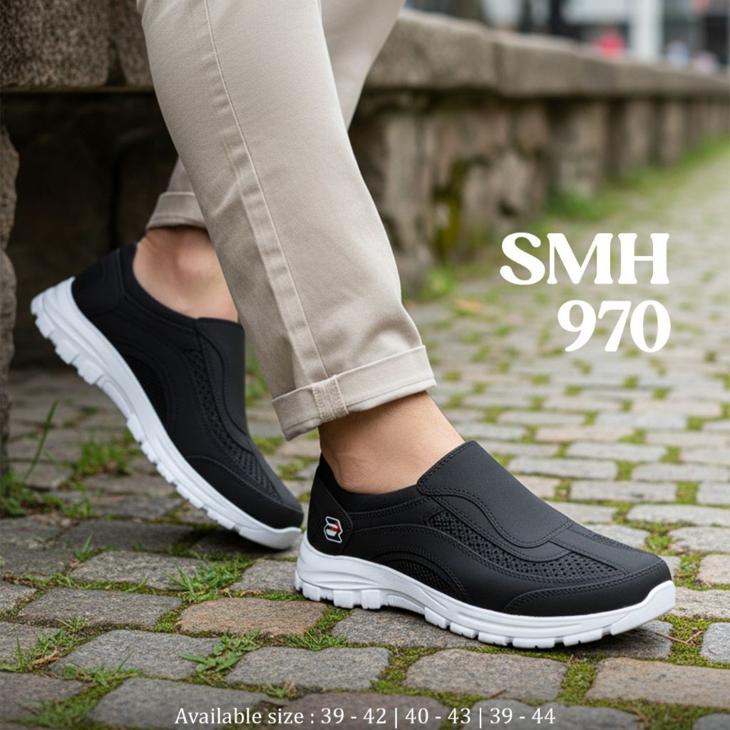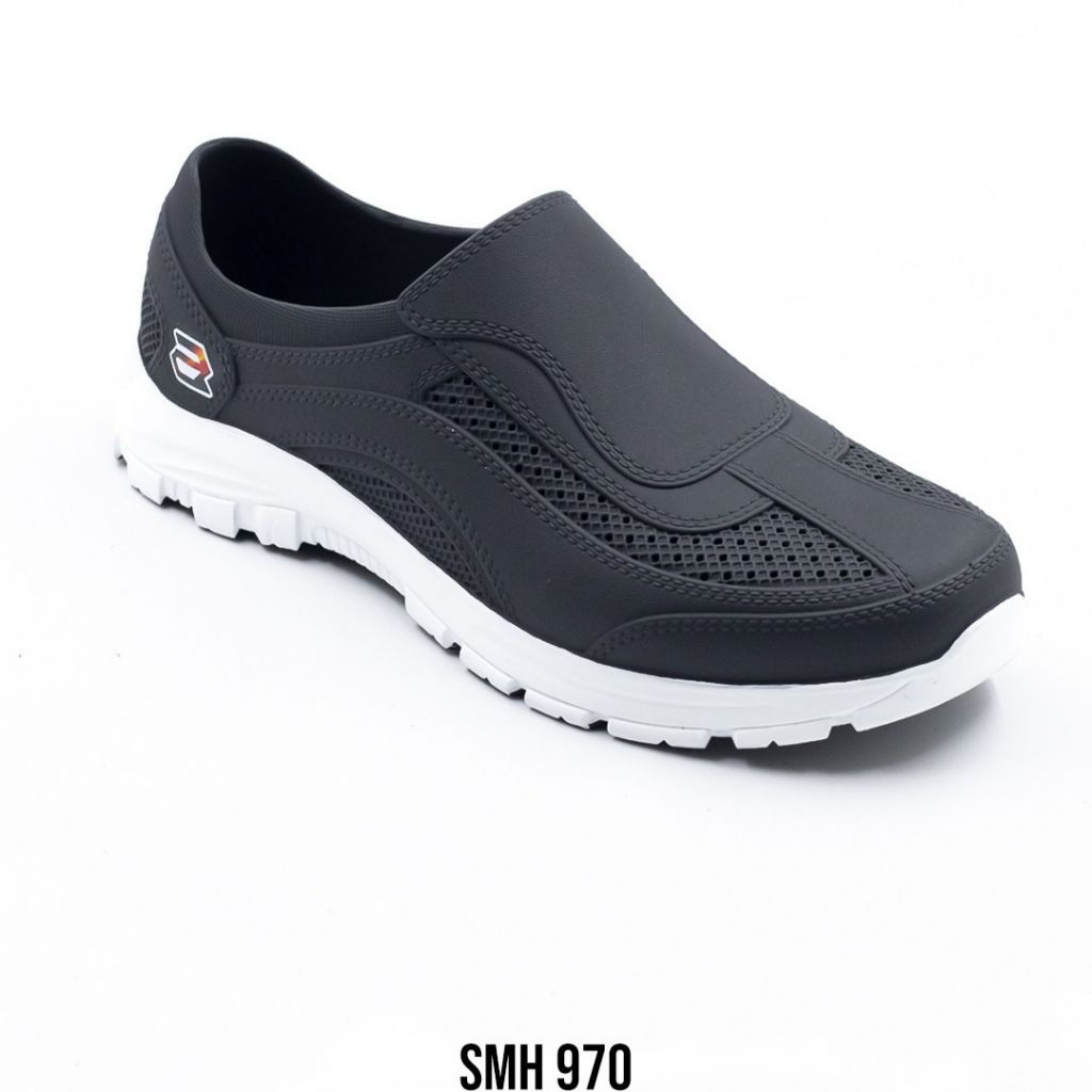 Sepatu Karet Pria Warna Hitam List Putih Slipon Att Smh 970