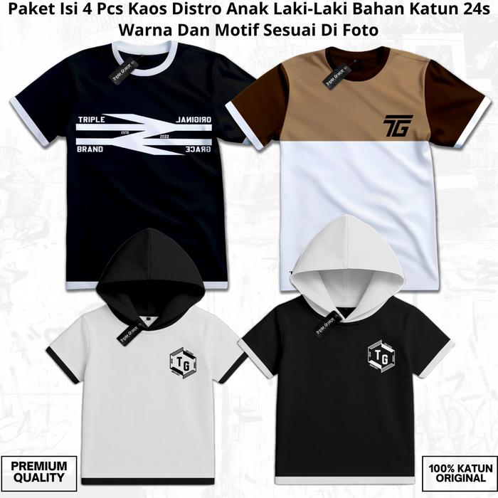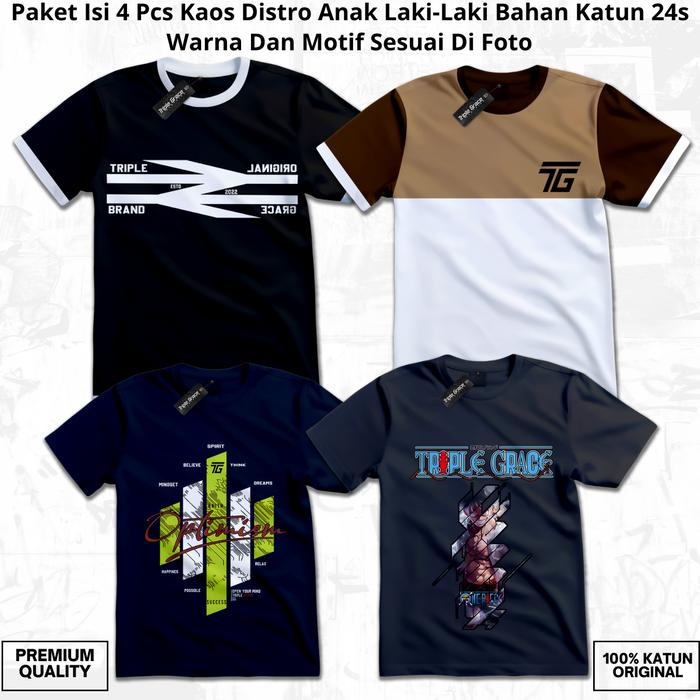 PAKET HEMAT ISI 4 PCS BAJU ANAK LAKI-LAKI PEREMPUAN KAOS DISTRO BAHAN KATUN COMBED 24S PREMIUM ORIGINAL BRAND TRIPLE GRA