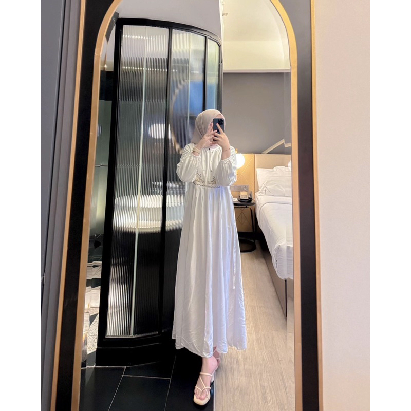 MECCA DRES GAMIS LEBARAN BORRDIR RAYON TWILL TALI SAMPING PREMIUM GAMIS HARI RAYA ABAYA PREMIUM