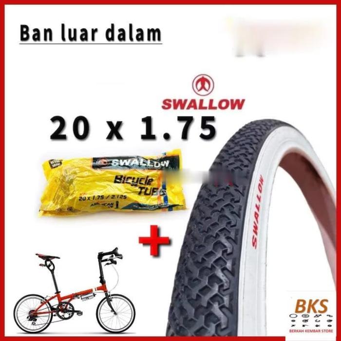 Ban Luar Dalam Sepeda 20 X 1.75 Swallow Putih Hitam 20X1.75 Bmx Sepeda Lipat Mini Seli Anak - Ban Dalam