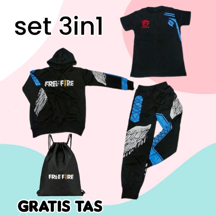 Setelan Celana Baju Kaos Sweater Gaming Anak Kids 3In1 Joger Anak Kaos Ff & Switer Anak Motif Heroic Platinum Usia 5-13