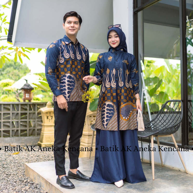 Sarimbit Keluarga 2026 Lebaran New Cardiy Series Batik Couple Keluarga Terbaru Pasangan Ayah Ibu dan Anak Motif Melodi Navy