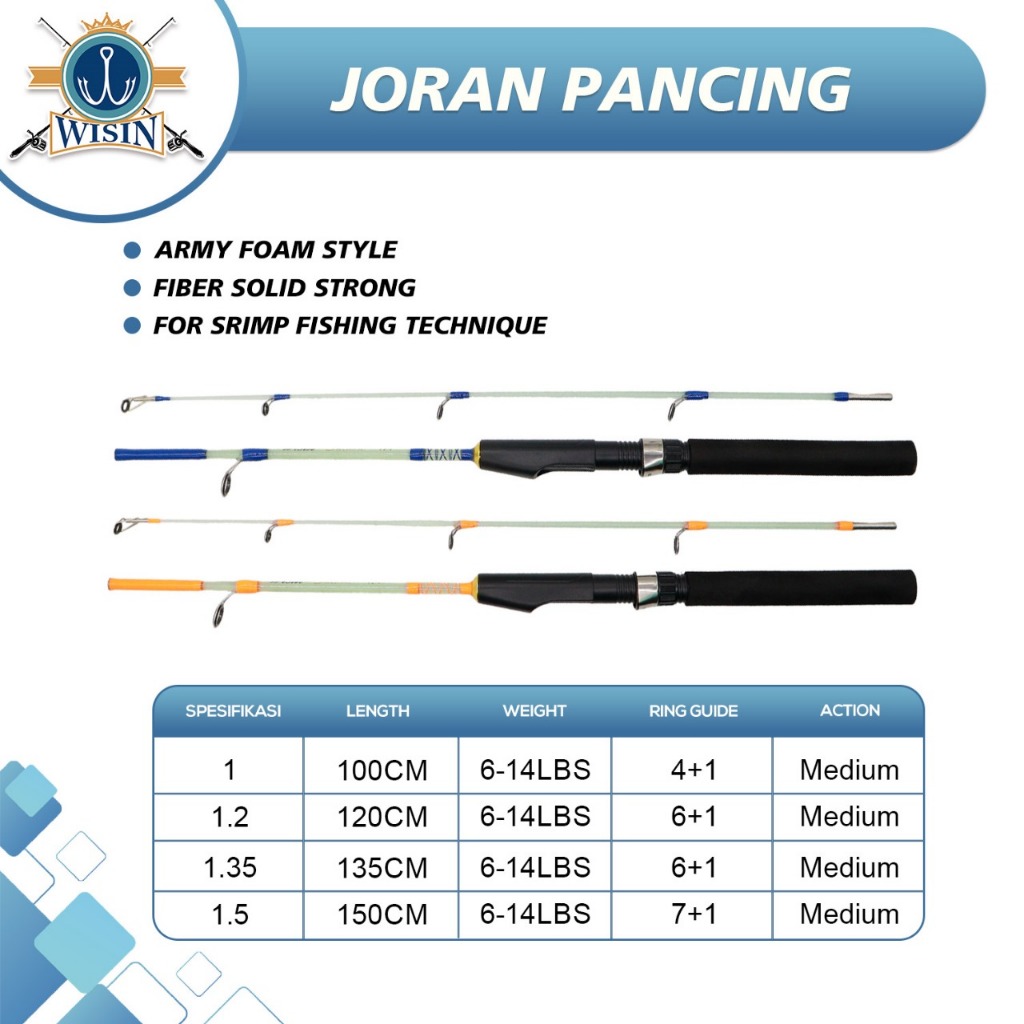 Wisin Joran Pancing Model Transparan 1.00M - 1.50M Joran Pancing Bahan Fiber Solid Cocok Buat Udang Super Lentur Joran S
