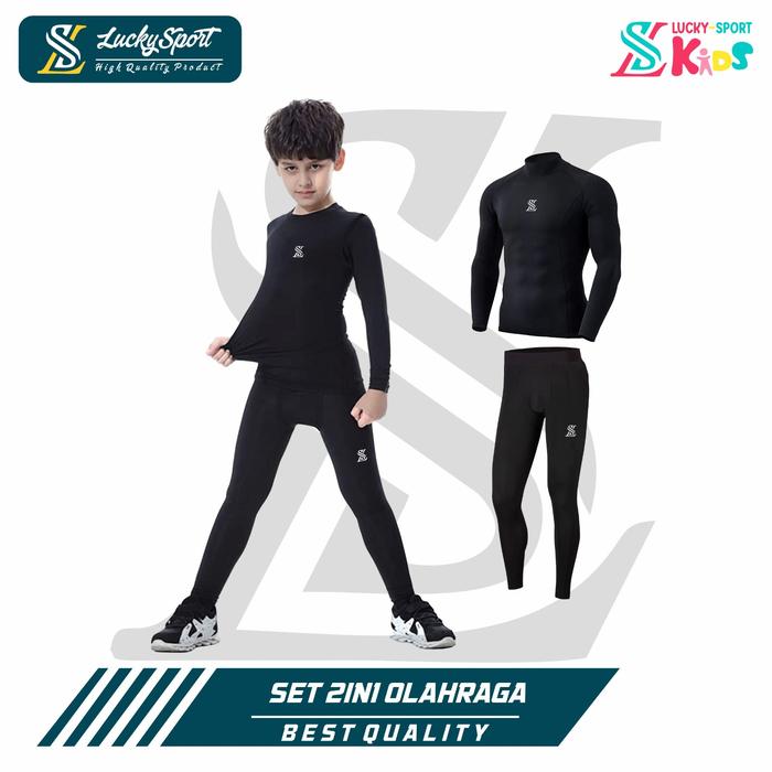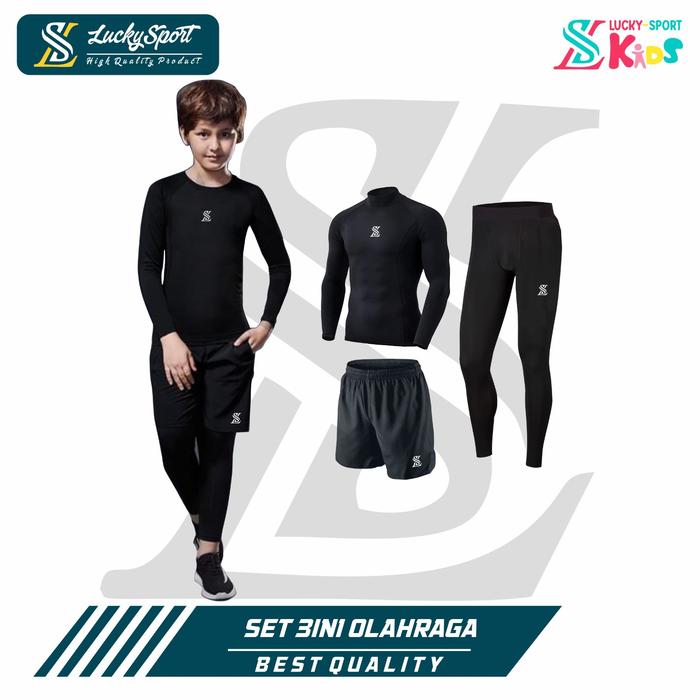 Paket 3In1 Baju Manset Baselayer Celana Pendek Dan Legging Olahraga Anak Pria Wanita Futsal Renang Lari Outdoor - S, Baj