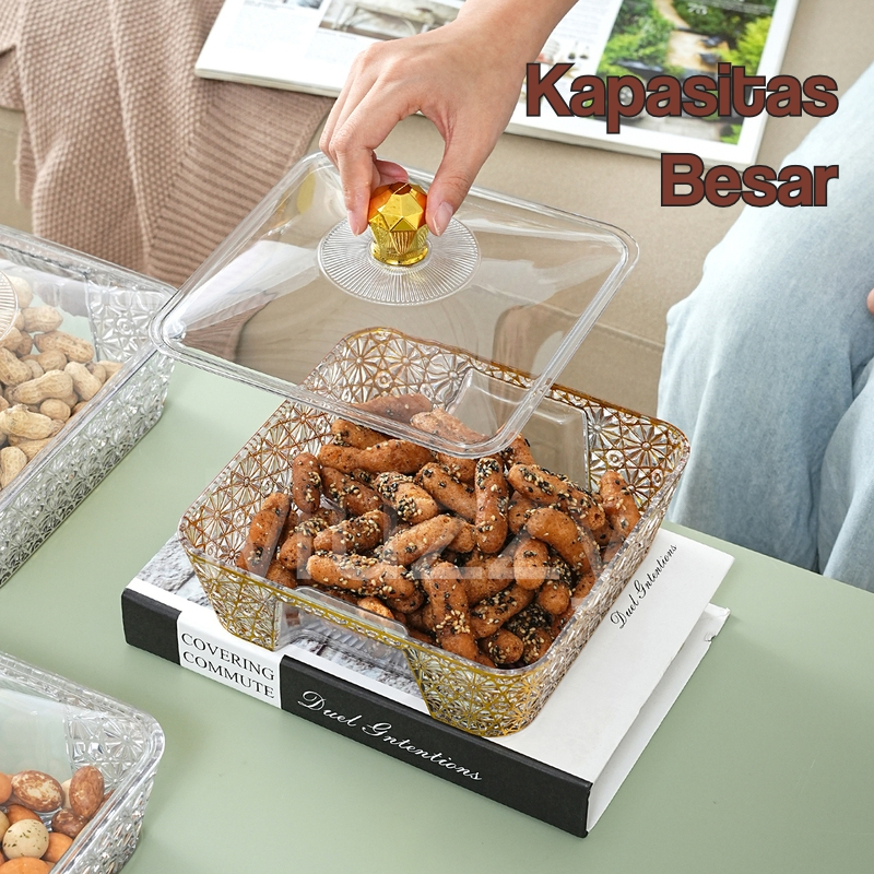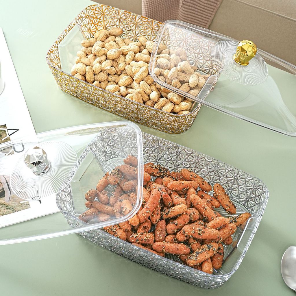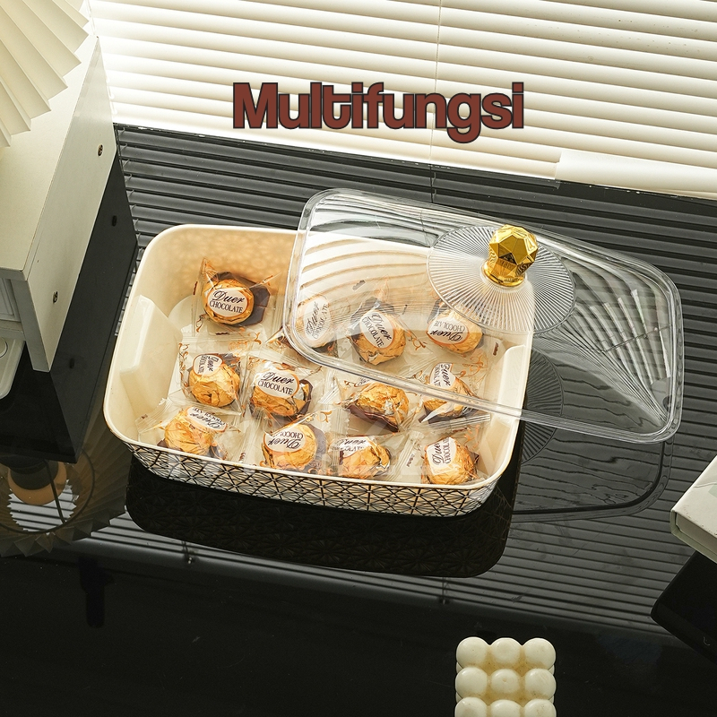 Muzy Tempat Prasmanan Motif Bintik Emas Wadah Prasmanan Aesthetics Storage Dengan Tutup Transparan Tahan Debu HSB864