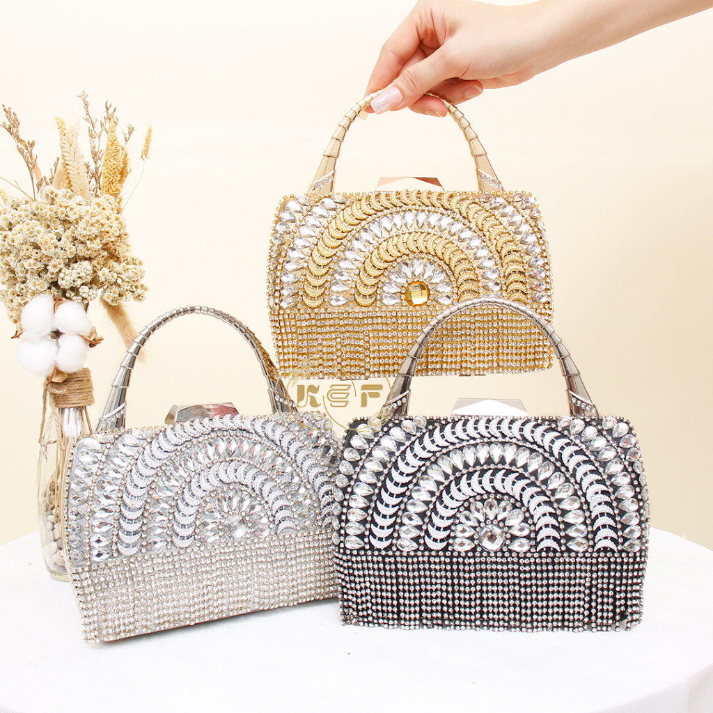KEFTas PESTA Wanita Jimin 1051/ CLUTCH Pesta Kondangan Permata Mewah Elegan-1051