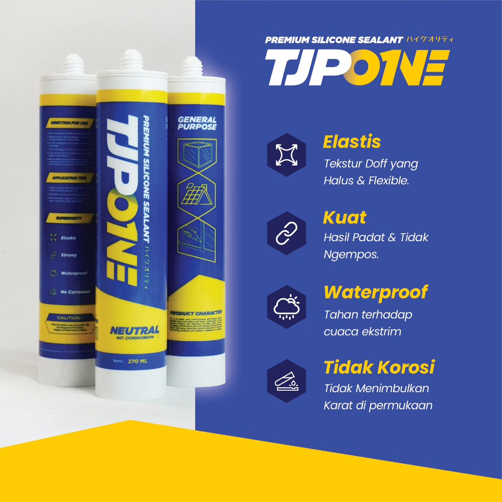 Lem Silicone Sealent Neutral Acetic Asam Tjp One / Lem Aquarium / Akrilik / Kaca / Lem Alumunium