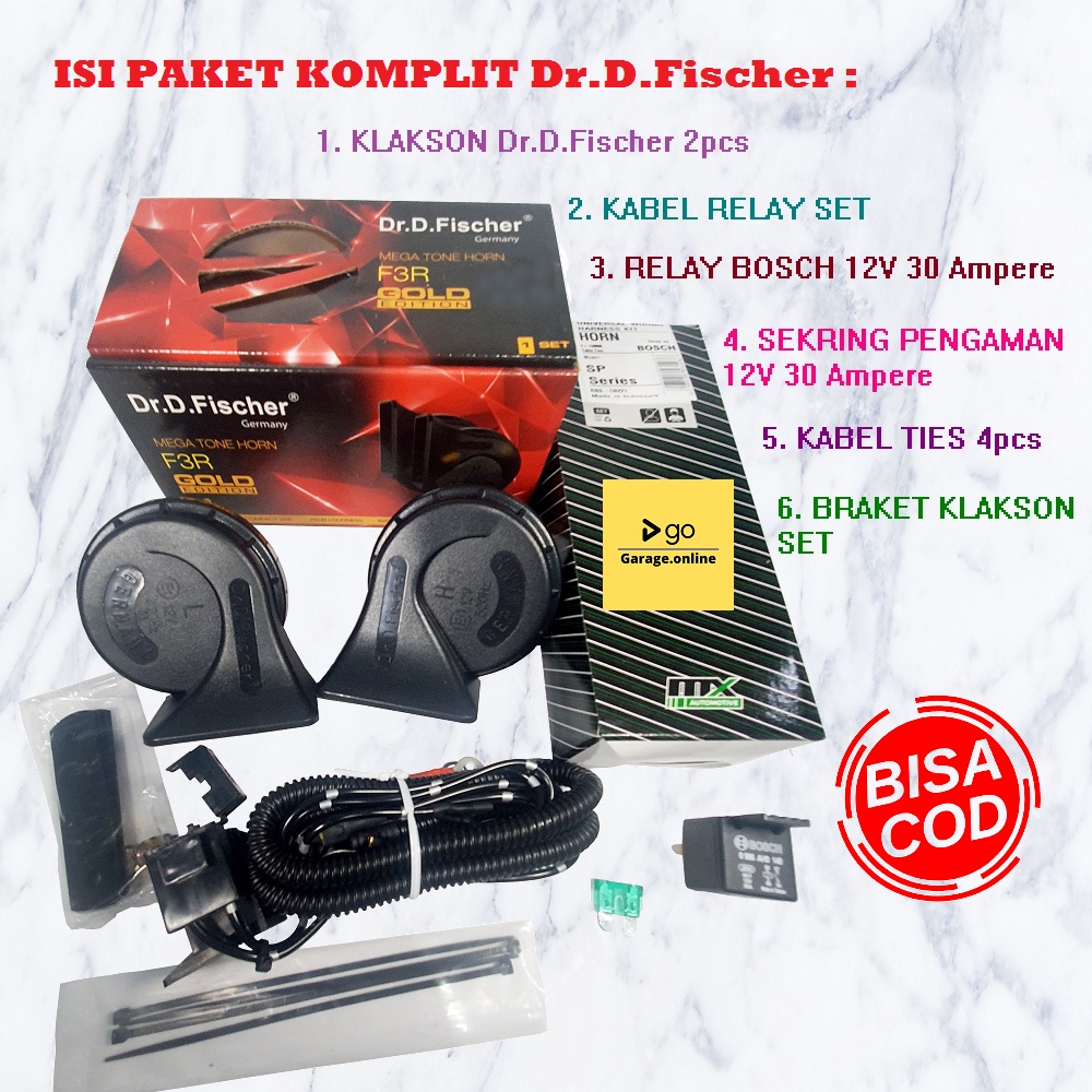 Paket Komplit Klakson Dr D Fischer Double Disk 12V + Kabel Relay Set Bosch Termurah