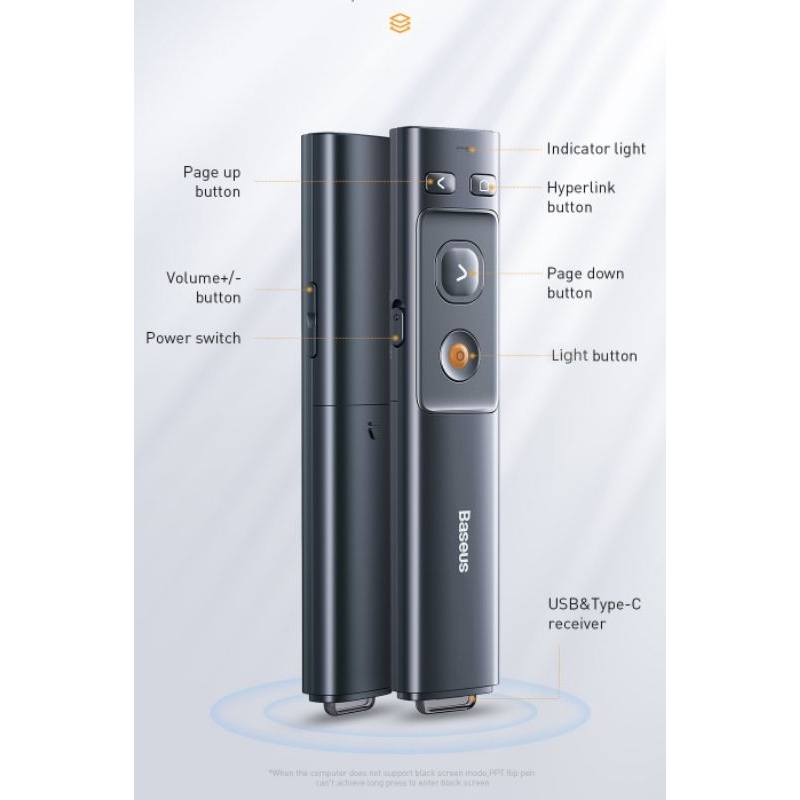 Baseus Orange Dot Wireless Presenter Laser Pointer Pen Remote Control