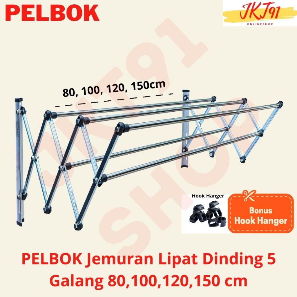 Plbok Double Jemuran Baju Pakaian Dinding Lipat Stainless Steel Rak Jemuran Baju 80 100 120 150