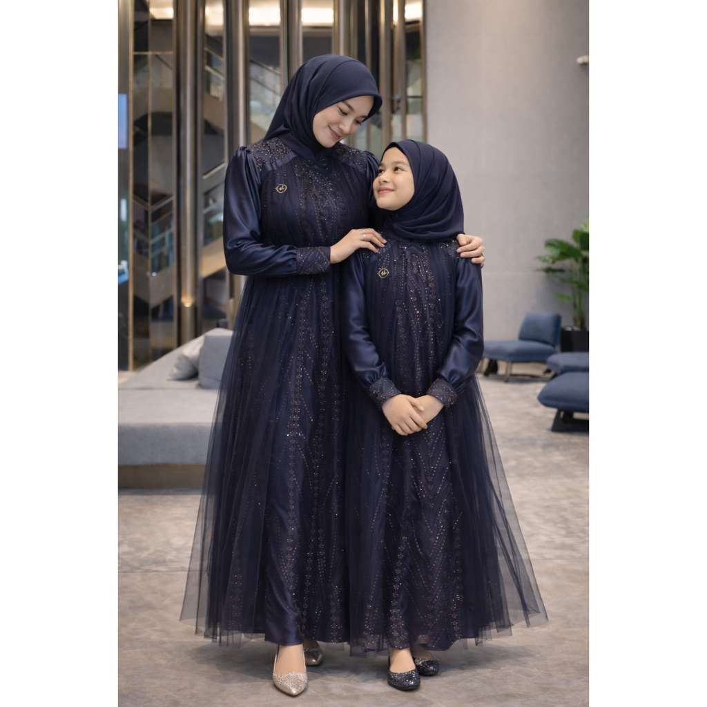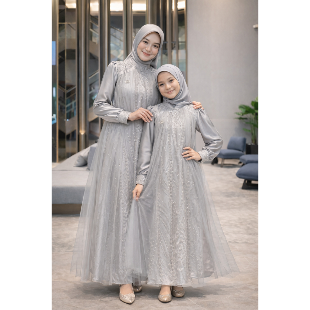 Gamis Brokat Couple Ibu & Anak Mewah Terbaru Dress Pesta Brokat Mahogany Gamis Sarimbit Lebaran 2026