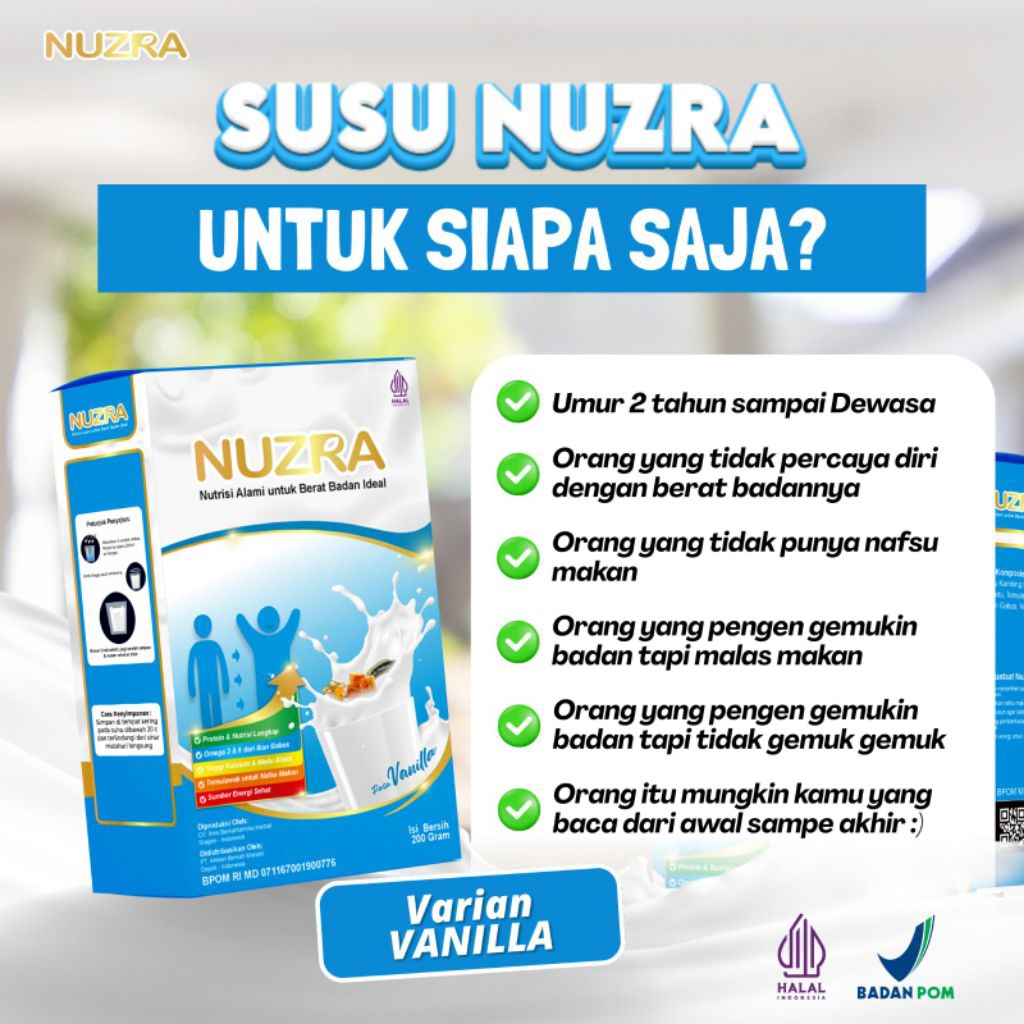 NUZRA weight gain susu kambing etawa penambah berat badan & nafsu makan HALAL BPOM RI 200gram