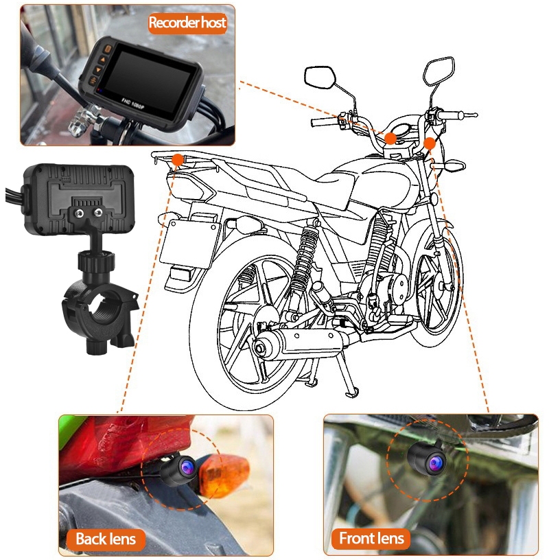 Mobil Camera DVR Motorcycle DVR Kamera Recorder Kamera Perekam Motor Dashcam Motor Waterproof 720P Lensa Angle 120 Derajat Dual Camera