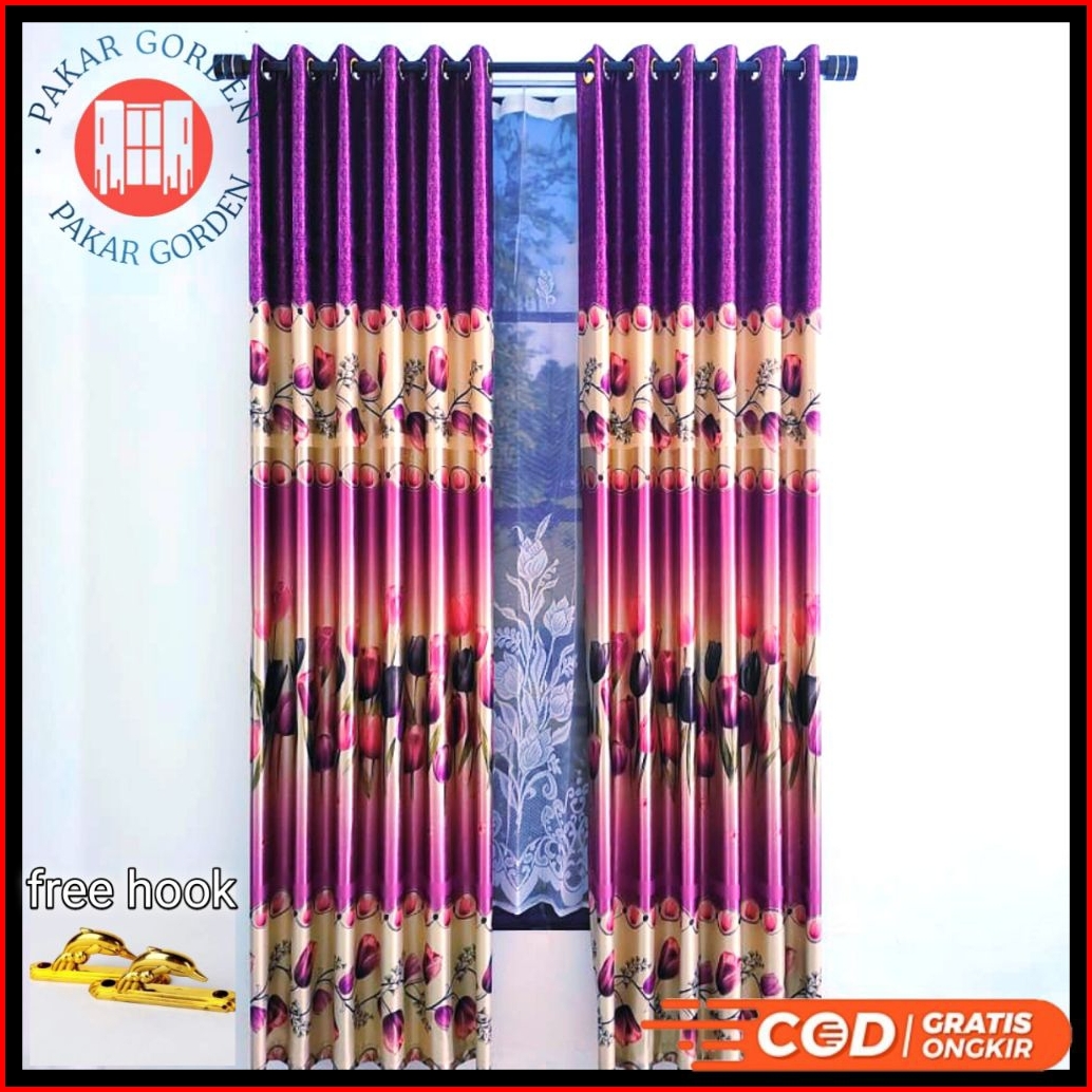 Gorden Jendela Mewah Aesthetic Blackout Impor Bunga Tulip Coklat Abu Model Semokring