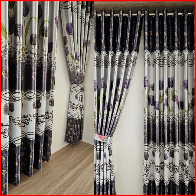 Gorden Blackout Mewah Motif Poni Tempel Bunga Tulip Prinmas Realpict 100