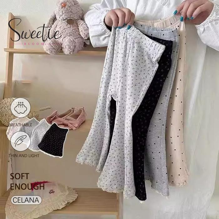 Sweetie Bloom 2-11 Tahun Celana Flare Melar Polkadot Gaya Korea Musim Semi/Musim Gugur Anak Perempuan Dengan Trim Rend