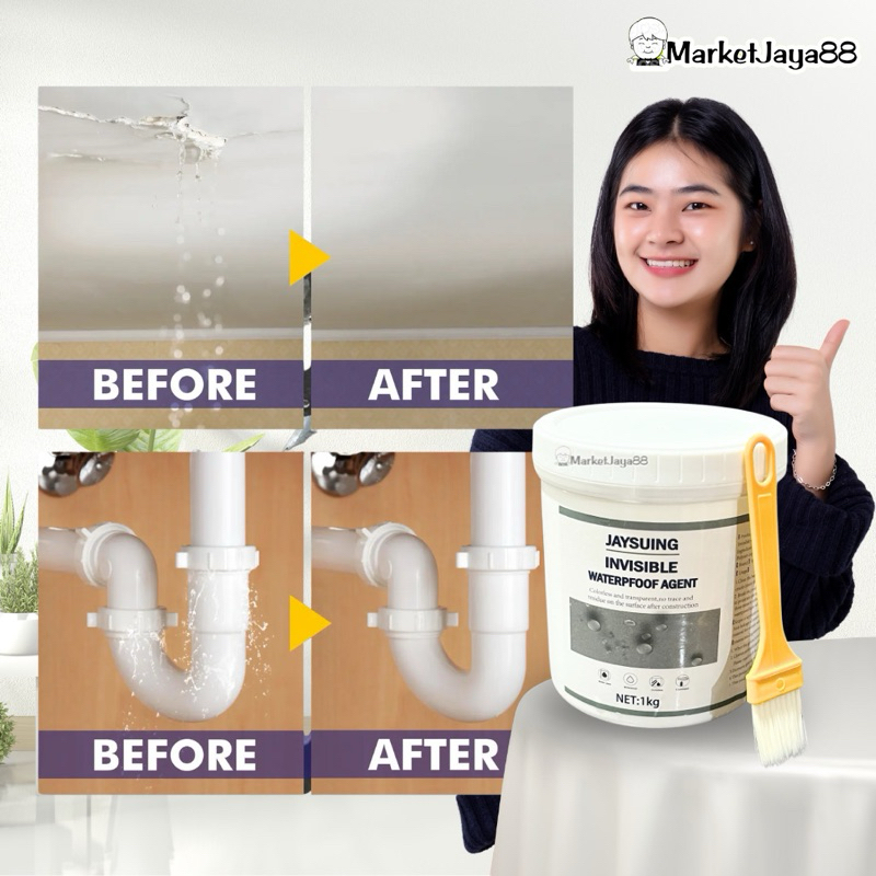 Mj88 Lem Transparan Anti Bocor Tahan Air Sealant Waterproof 1Kgs / Lem Transparan Jaysuing Cat Anti Bocor Invisible Wate
