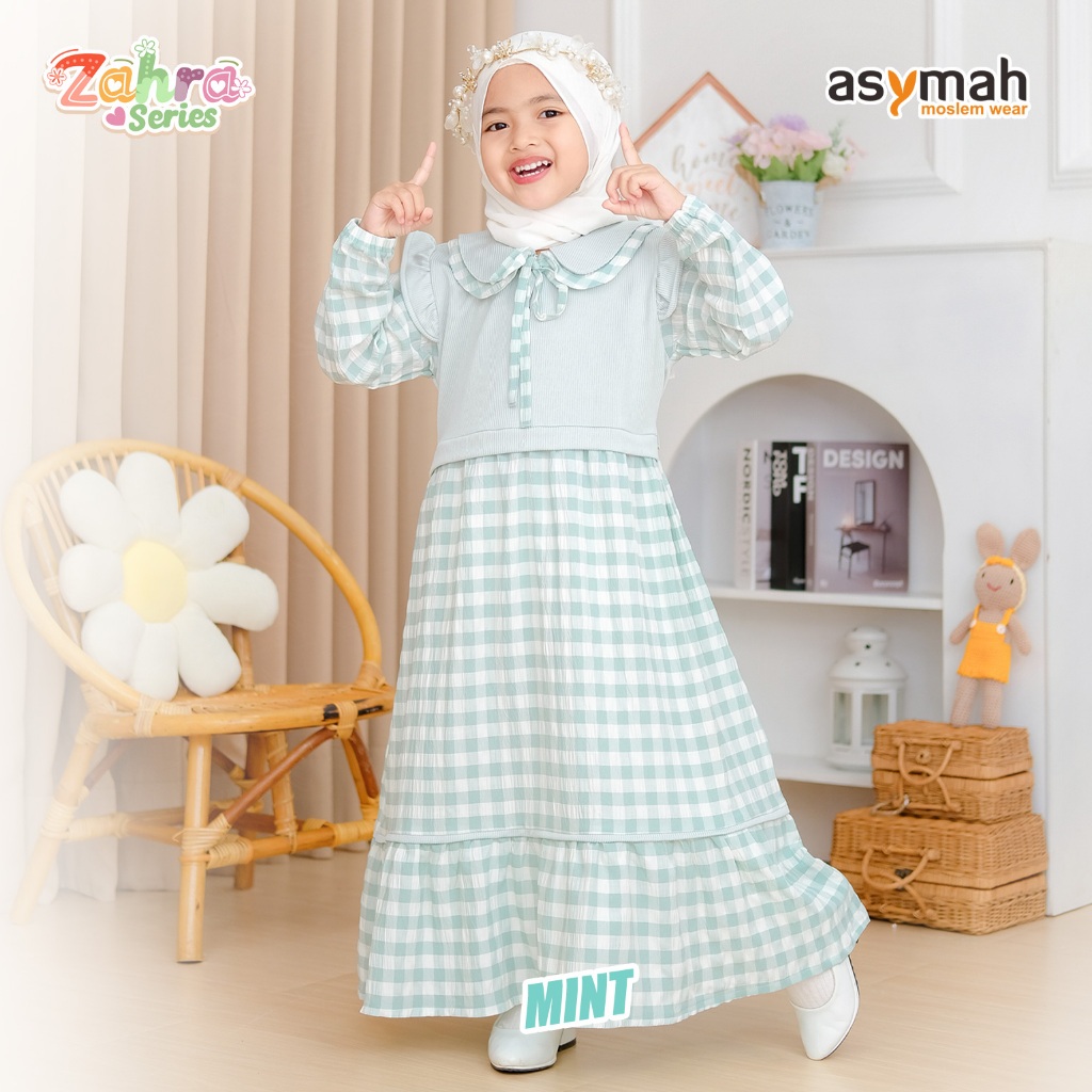 Gamis Anak Premium Knit Mix Crincle Kotak Kotak Zahra Series