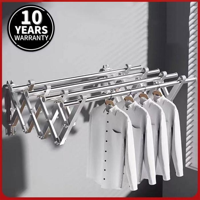 ️Ready Stock ️Sus 304 Stainless Jemuran Baju Dinding Lipat Tarik Baja Tahan Karat/Rak Jemuran Pakaian Basah Lipat Rak