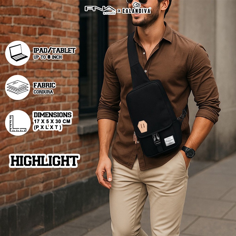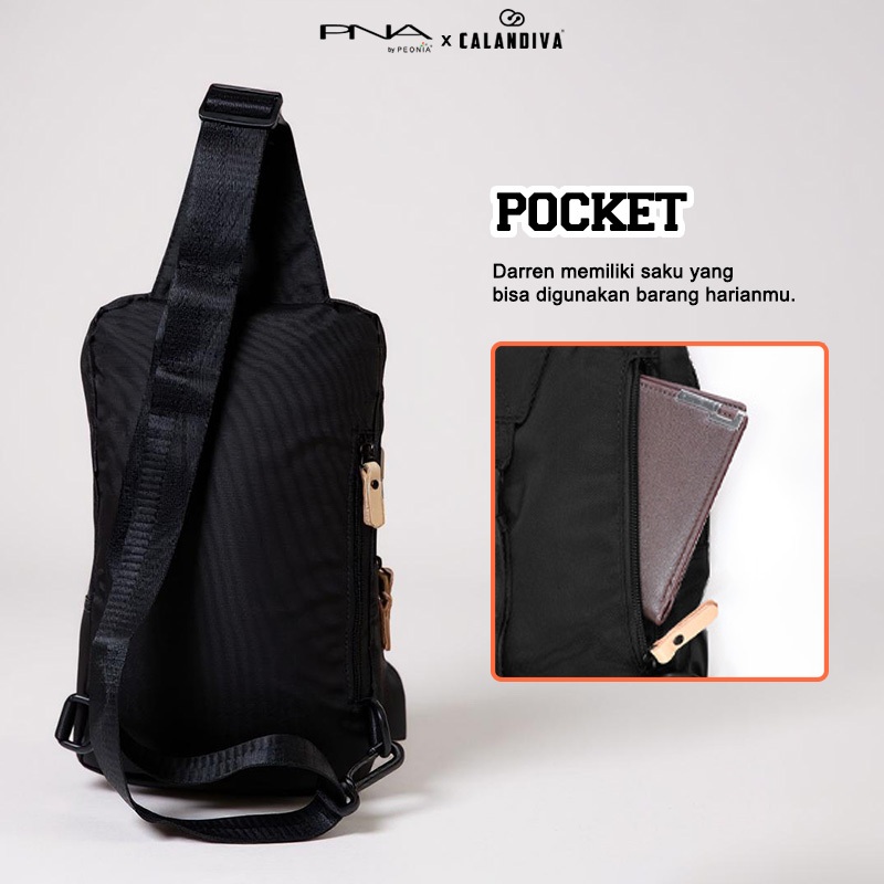 Calandiva Darren Water Resistant Tas Import Selempang Bahu Pinggang Pria Wanita Unisex Premium Sling Bag Usb Cable Charg