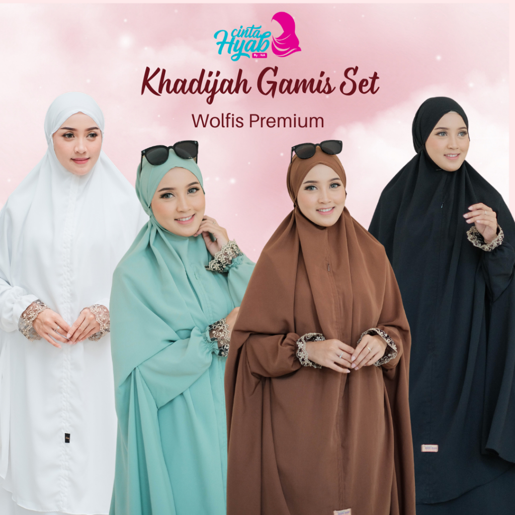 Khadijah Gamis Set Hijab Umroh Haji Jilbab Tangan Jumbo Wolfis Premium