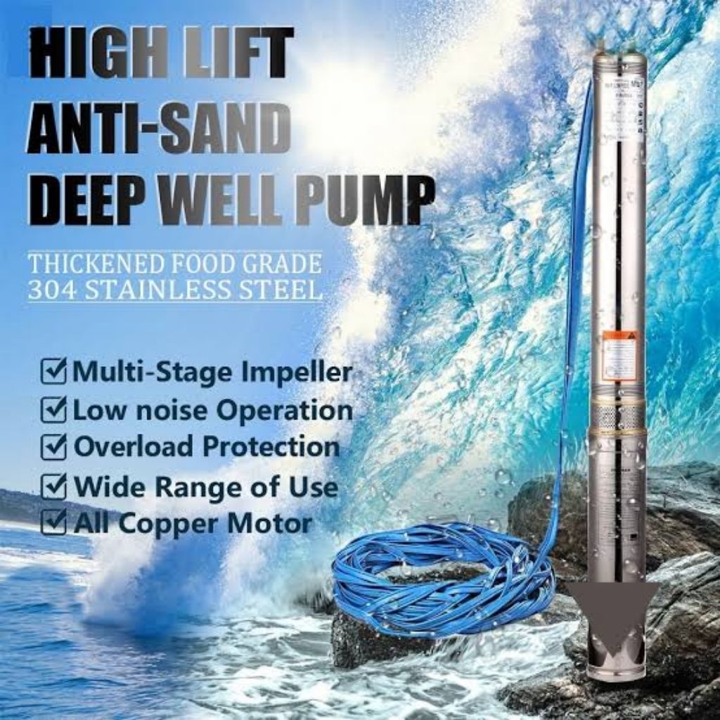 Pompa Satelit Subsibel 1,5" Inc 0.5 HP 2SDM1 07/38 Submersible Pump Include Kabel 30M
