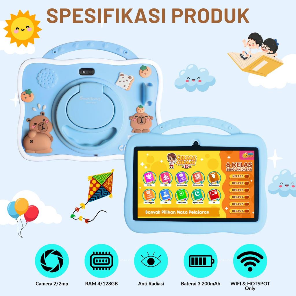 SMARTBERRY Kids Study Tab B96 - Tablet Anak Android 4/128GB 7 Inch 2 Kamera Bluetooth Wifi