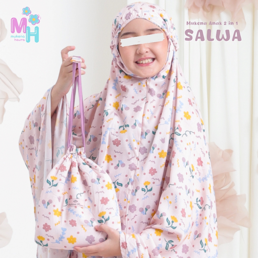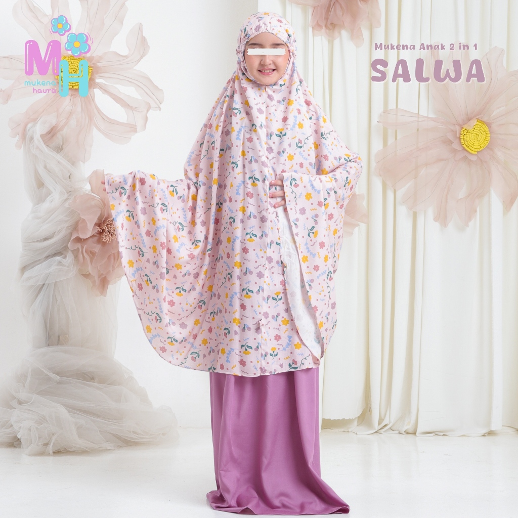 Mukena Anak Rayon Motif Salwa 2 In 1 Resleting Dagu