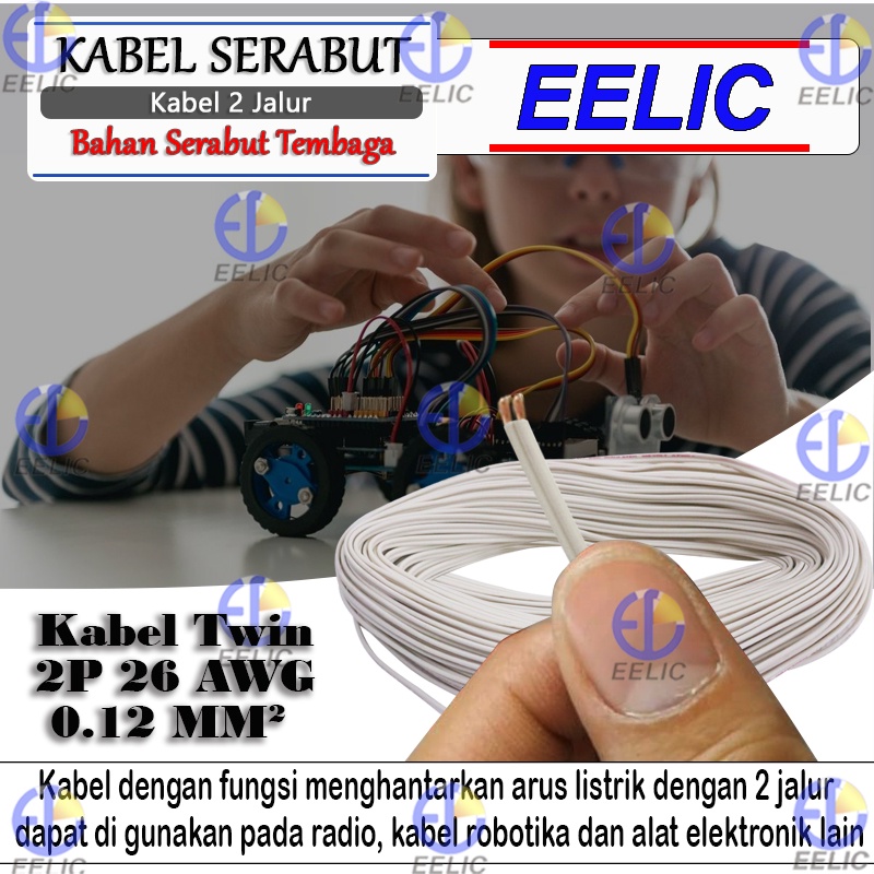 Eelic Kal-2X10 Kabel Twin Kabel 2 Cabang 2P 26Awg Ukuran 0.12 Mm2 Panjang 40Meter 10Pcs Serabut Per Kabel Bahan Tembaga
