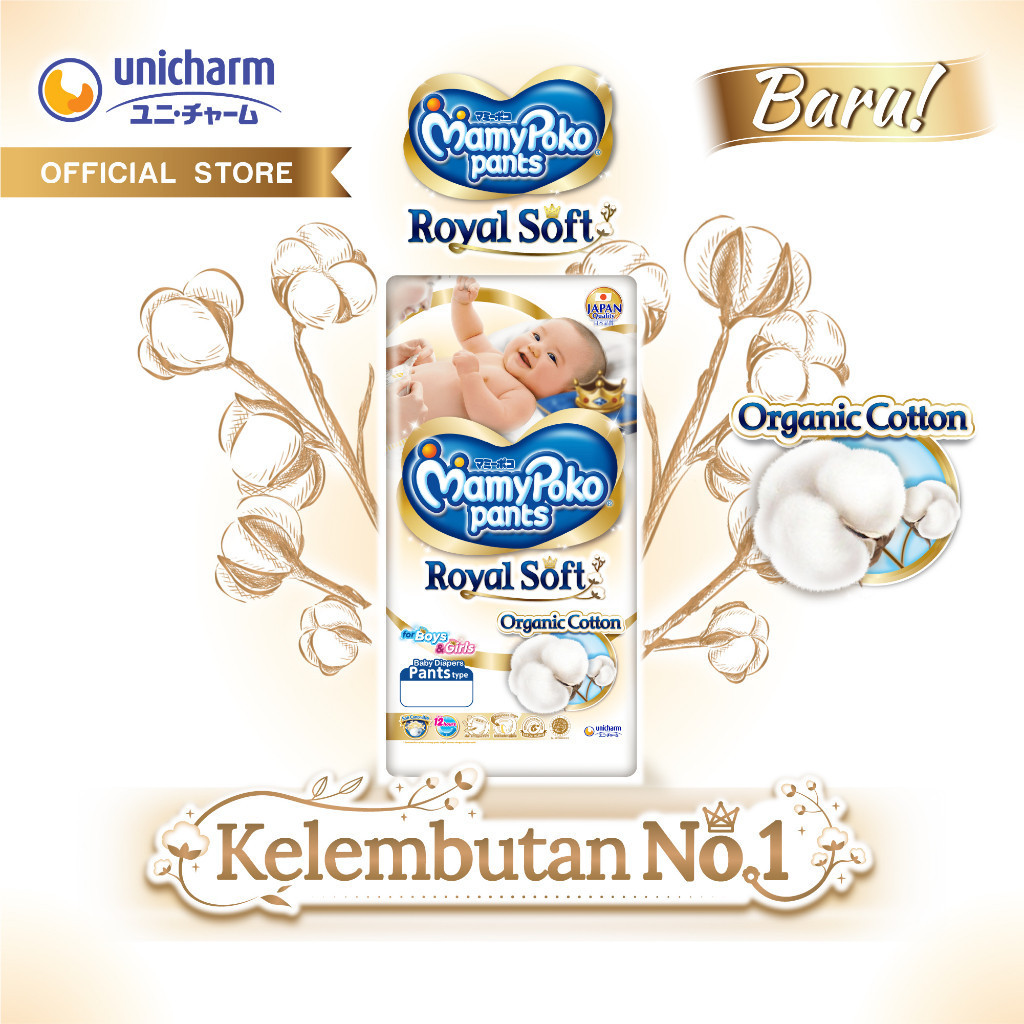 MamyPoko Royal Soft Organic Cotton - All Size NB-XL - Popok Perekat - 1 Pack - Ultra Jumbo