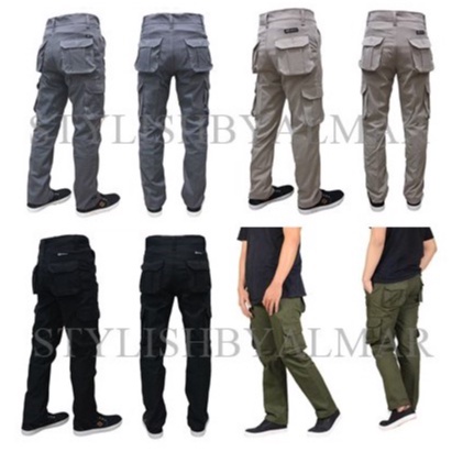 Celana Cargo Panjang Pria Cowok Hitam Abu Hijau Army Cream Berkualitas