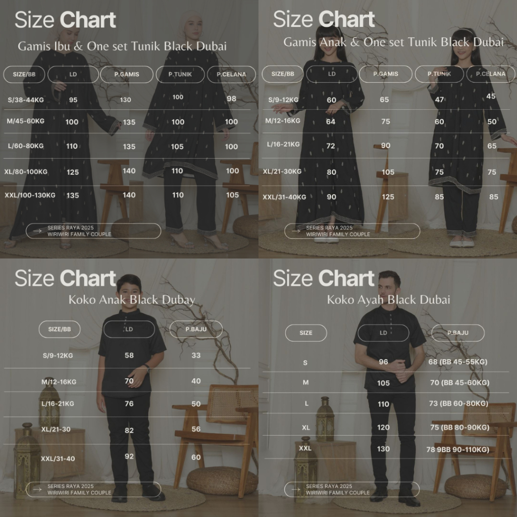 WIRIWIRI SERIES RAYA 2026 Black Dubai Sarimbit Abaya & One set Bordir Ayah ibu & Anak (Premium)