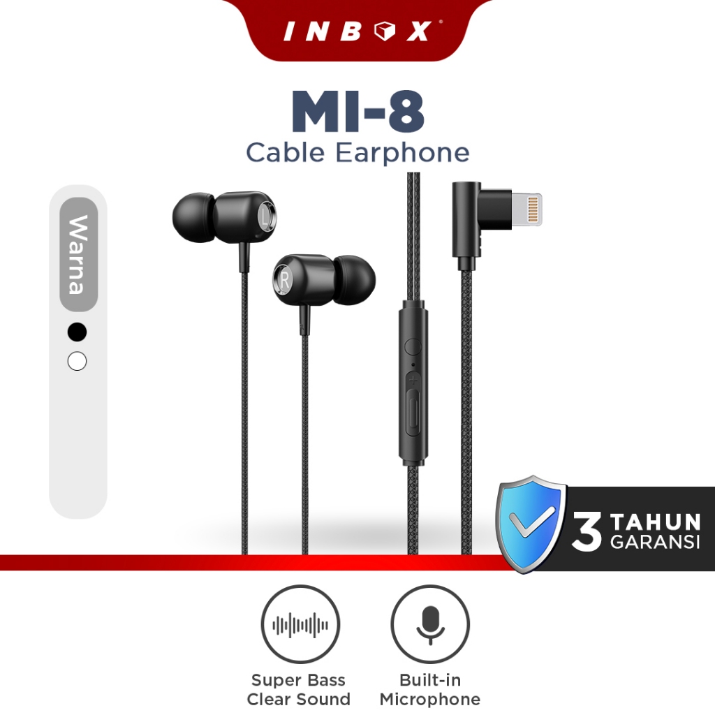 Inbox MI-8 Earphone Lightning untuk Iphone dengan Microphone Super Bass Audio Headset
