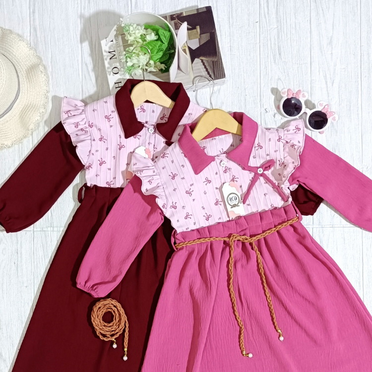 Baju Gamis Aretha Anak Perempuan Usia 1-9 Tahun Crinkle Muslim Free Belt Cantik