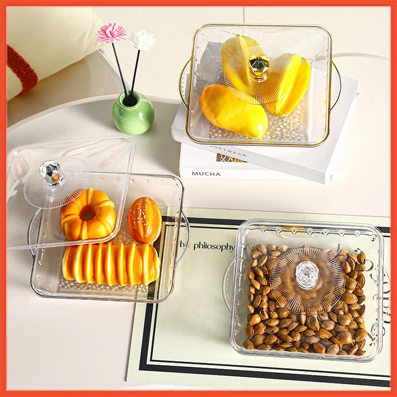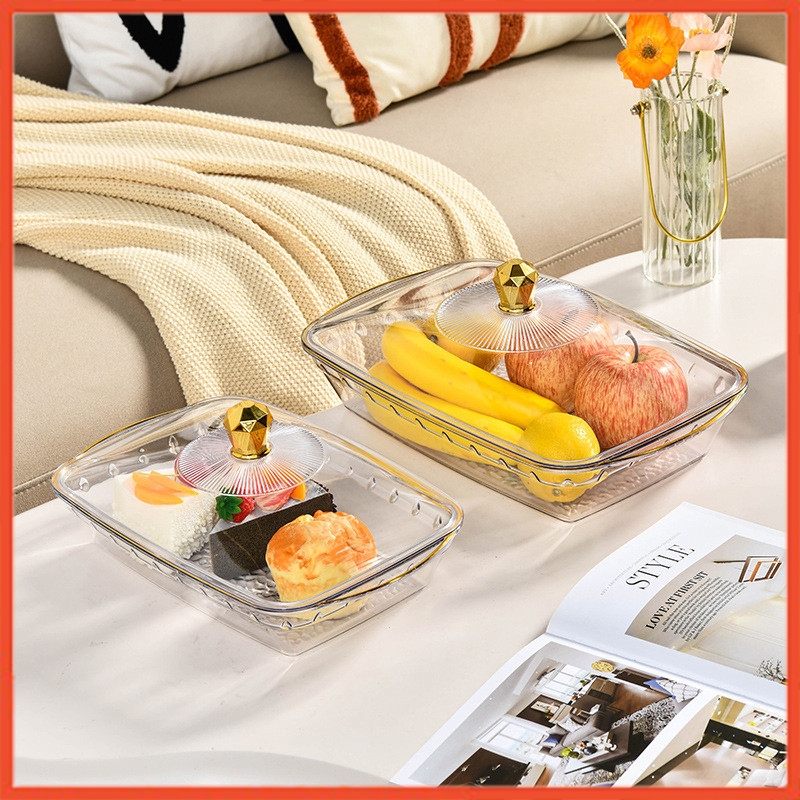 Hoptech - Nampan Plastik Aesthetic dengan Tutup - Tempat Buah & Roti | Multifungsi Tahan Lama