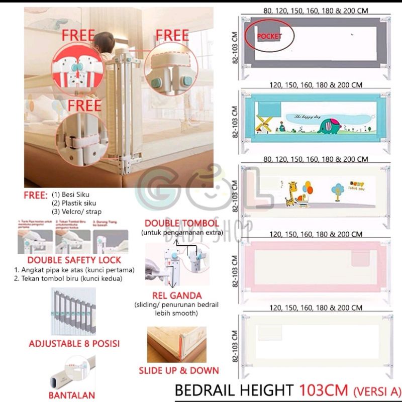 GOL Baby Bedrail Pembatas Pengaman Pagar Kasur Ranjang Tidur Bayi Anak Bed Rail Fence Safety Safe Guard