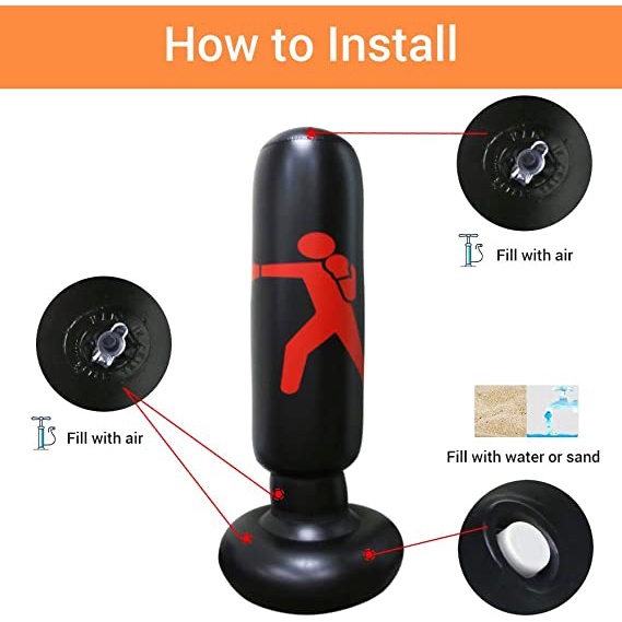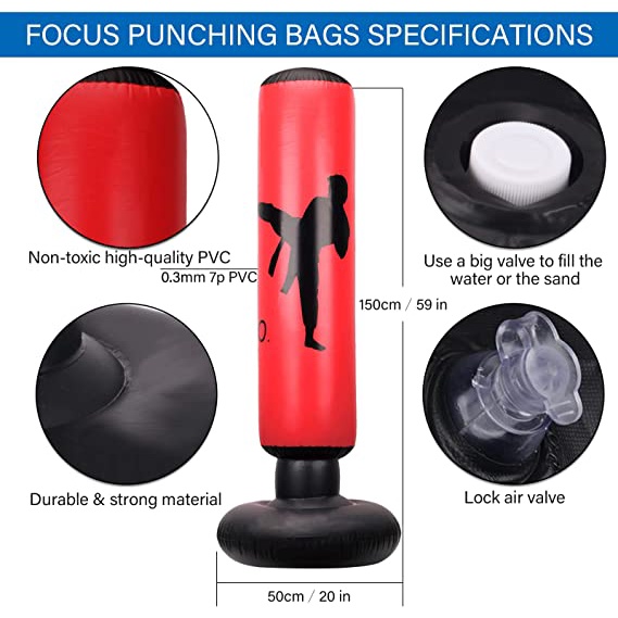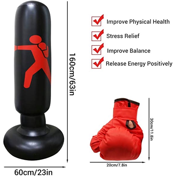 Tiang Samsak Tinju Berdiri Anak Dewasa Berkualitas Vertical Punching Bag Mma Muaythai Karate Stand Inflatable 1.6 M Free