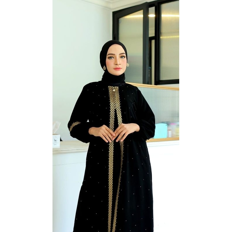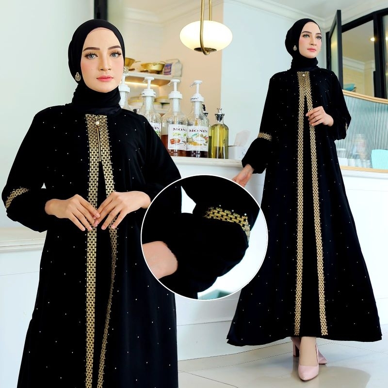 Abaya Gamis Syari Arab Saudi Hitam Bordir Turkey Muslimah Turki Cantik Abaya Ziper Renda Gold