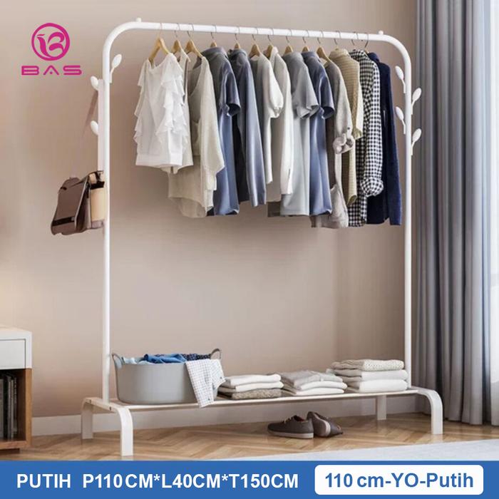 Bas Gantungan Baju Rak Besi Rak Jemuran Portable Stand Hanger Single Tempat Pakaian Rak Baju - Putih