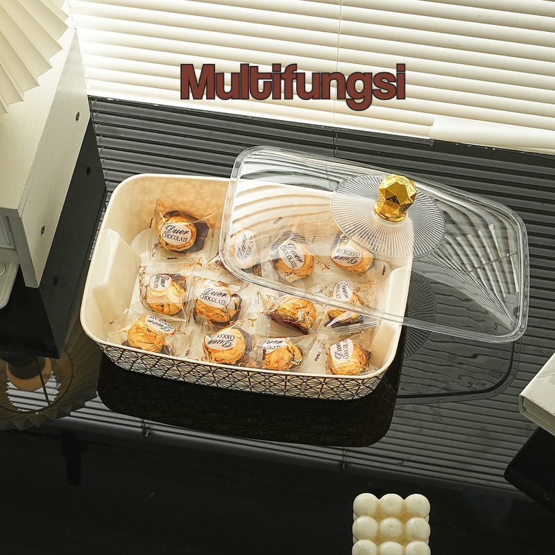 BASSY Wadah Saji Makanan Dengan Tutup Transparan Aesthetic Tempat Buah Nampan Tray Food HSB864