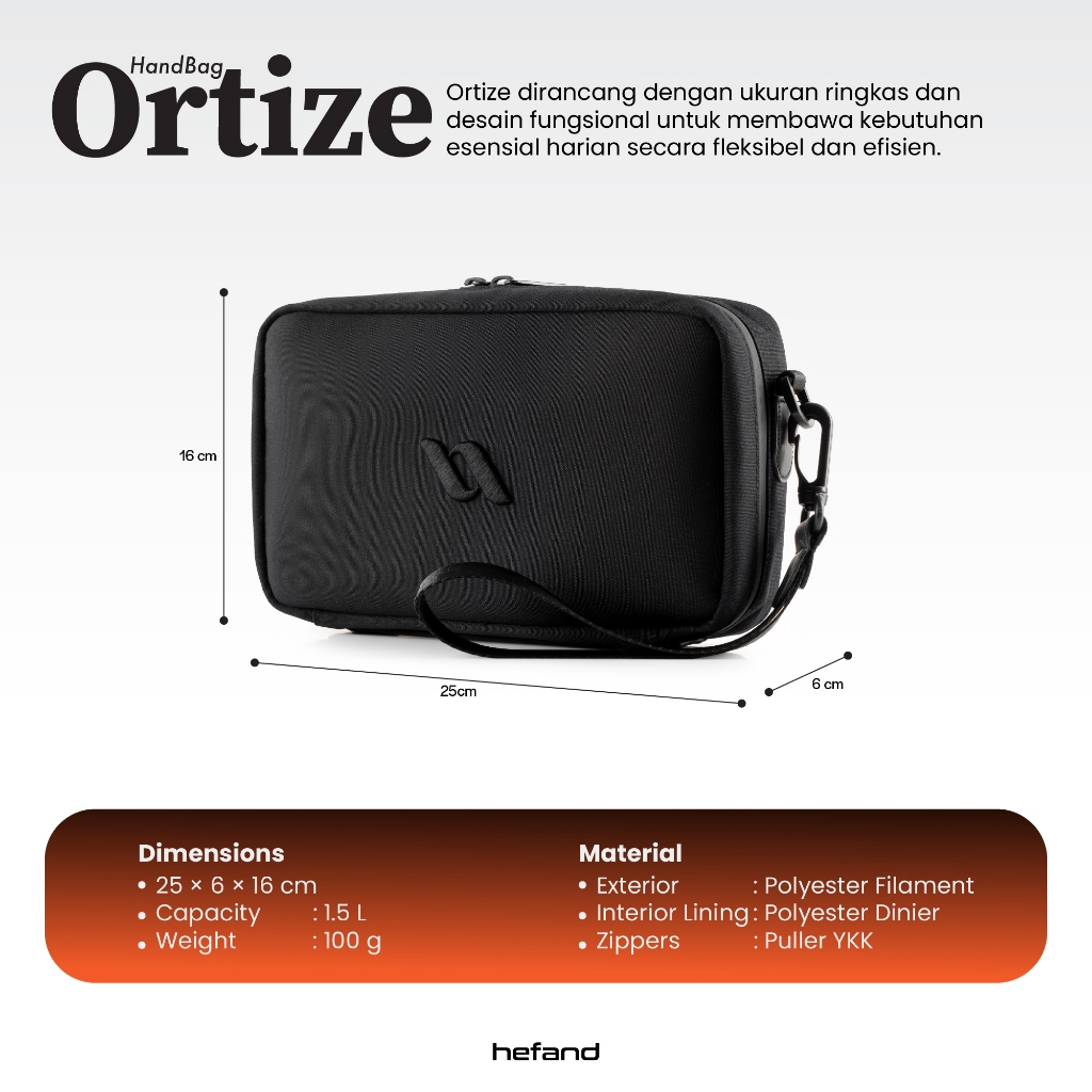 Hefand - Handbag Pria Ortize Clutch Bag Slingbag Multifungsi Tas Tangan Cowok Anti Bara Api & Waterproof Anti Air