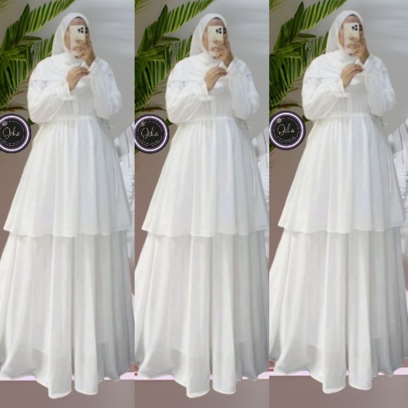 GAMIS CERUTY PUTIH BERSIH POLOS//GAMIS MALAYSIA TERBARU//GAMIS LEBARAN 2024//GAMIS SERUTI FULL PURING LD 130//SERENA MAX