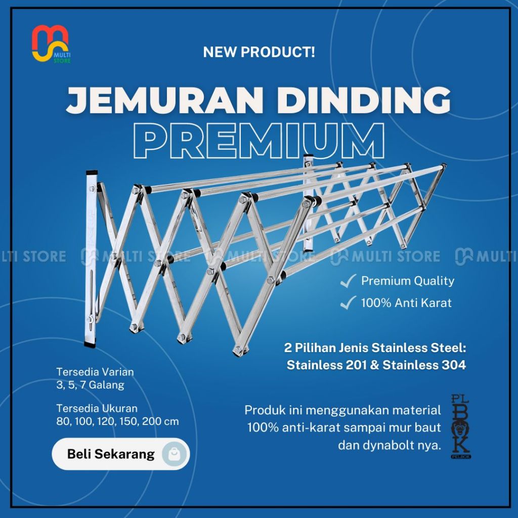 Pelbok Premium 200 Cm Jemuran Baju Dinding Lipat Stainless 100 PERSEN Tahan Karat