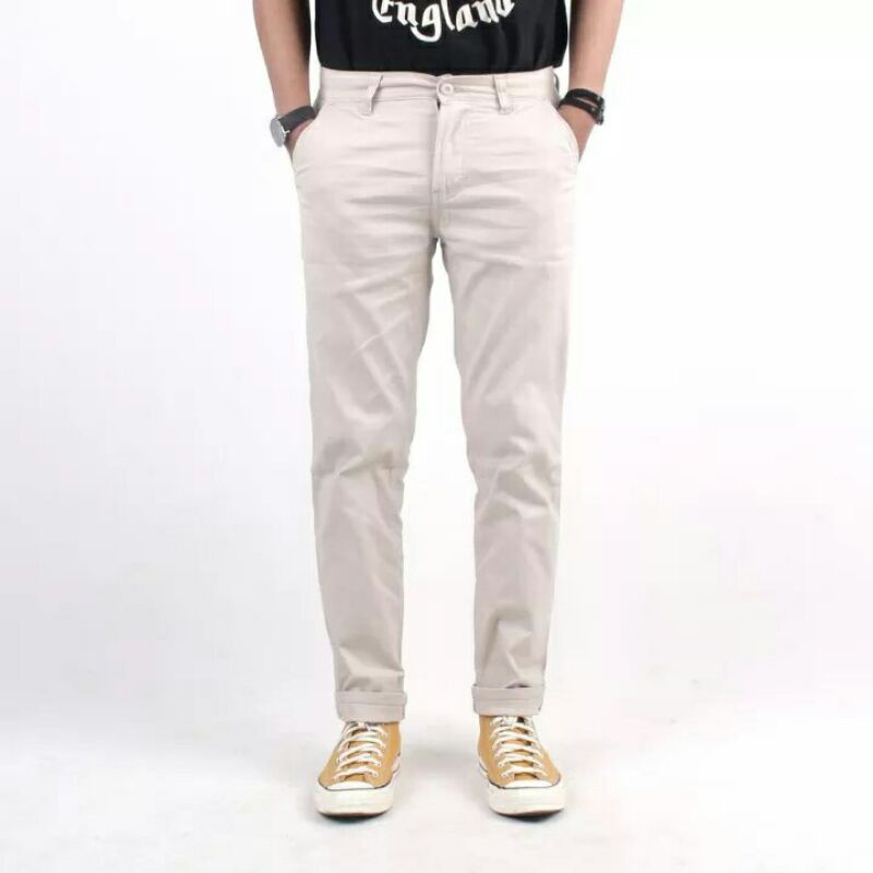 Celana Chino Panjang Pria Slimfit Kerjaharian Santai Casual Formal Hitam Abu Cream Mocca Size 27-38